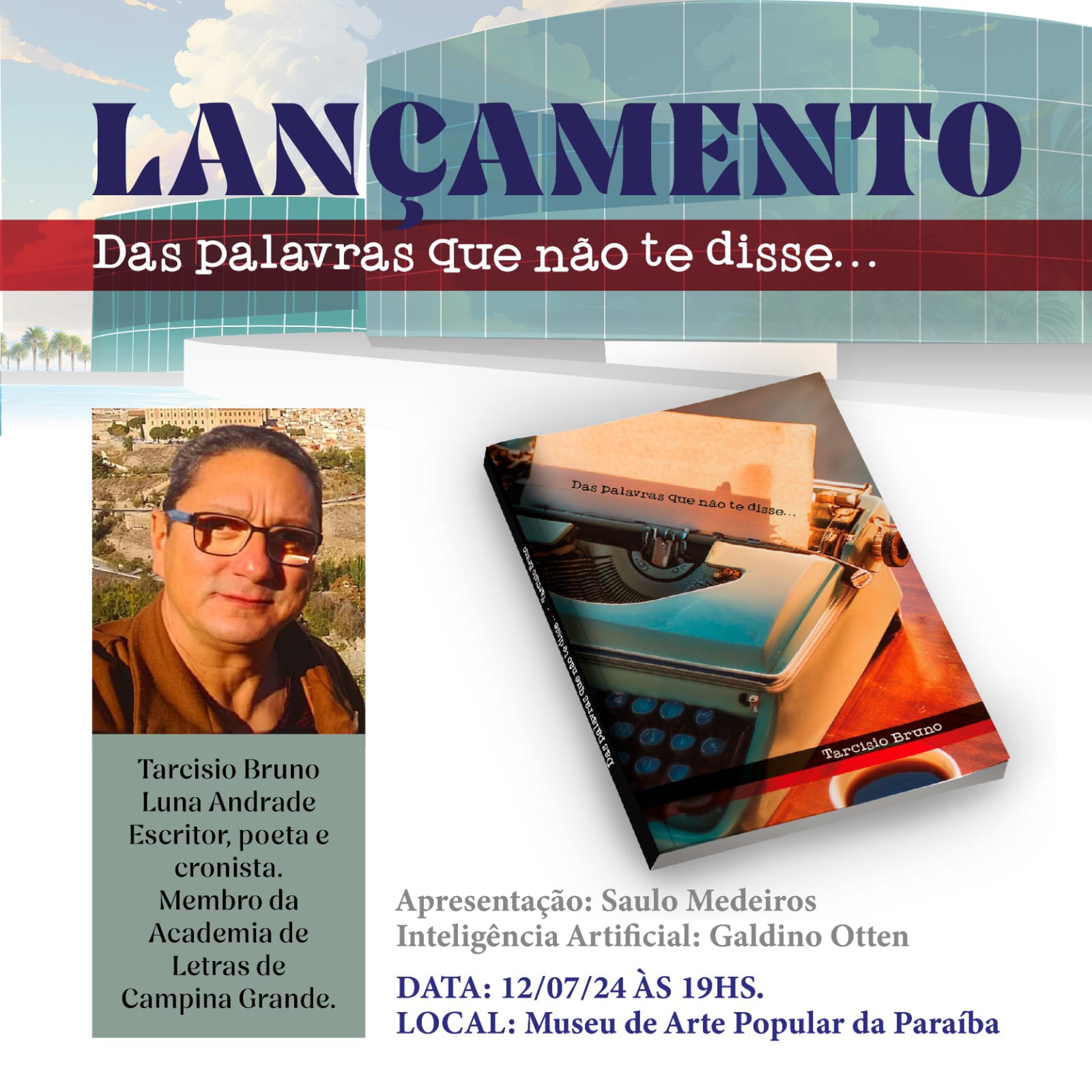 Museu de Arte Popular da Paraíba recebe lançamento do livro “Das palavras que não te disse”, de Tarcisio Bruno