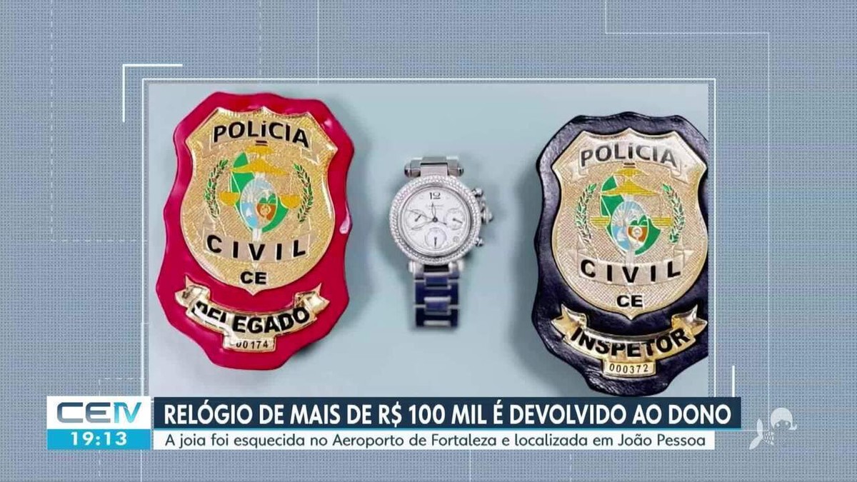 A Polícia Civil foi quem realizou a restituição do relógio de luxo de uma marca francesa. A devolução aconteceu na Delegacia do Aeroporto de Fortaleza, situada no bairro Serrinha. A vítima mora nos Estados Unidos, e estava em Fortaleza embarcando com destino a São Paulo.
